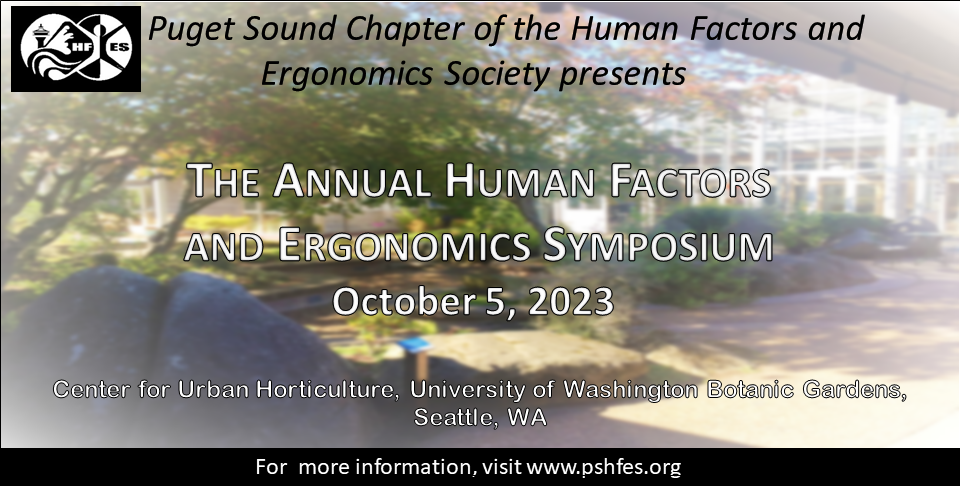 The Puget Sound Chapter of the Human Factors and Ergonomics Society is holding their 23rd annual symposium on October 5th in Seattle, Washington. This will be our first person symposium in 4 years. We have lined up an exciting program including the following speakers and presentations: