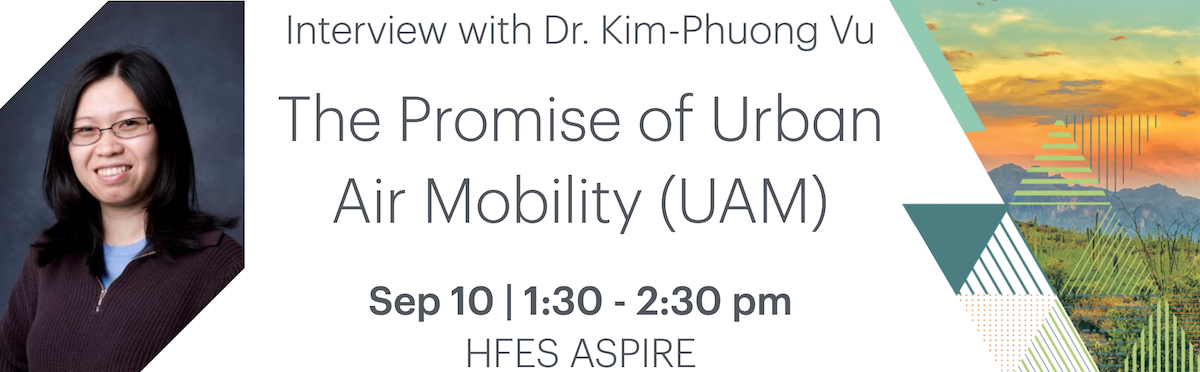 Urban Air Mobility (UAM) is set to change our industry in the coming years. To get our community ready for this transition, the first day of HFES ASPIRE on Tuesday, September 10, will be dedicated to UAM. The morning starts with three lectures on the topic (9:45-10:45) followed by a discussion panel in the afternoon on the promise of UAM (1:30-2:30).