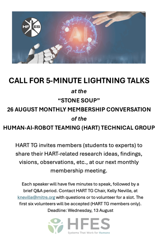 HART TG "Stone Soup" Lightening Talks - Tuesday August 26 noon EDT/9am PDT