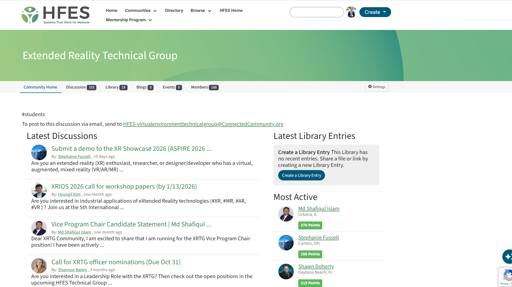 • 1.  Extended Reality Technical Group posting access - Connect HFES website