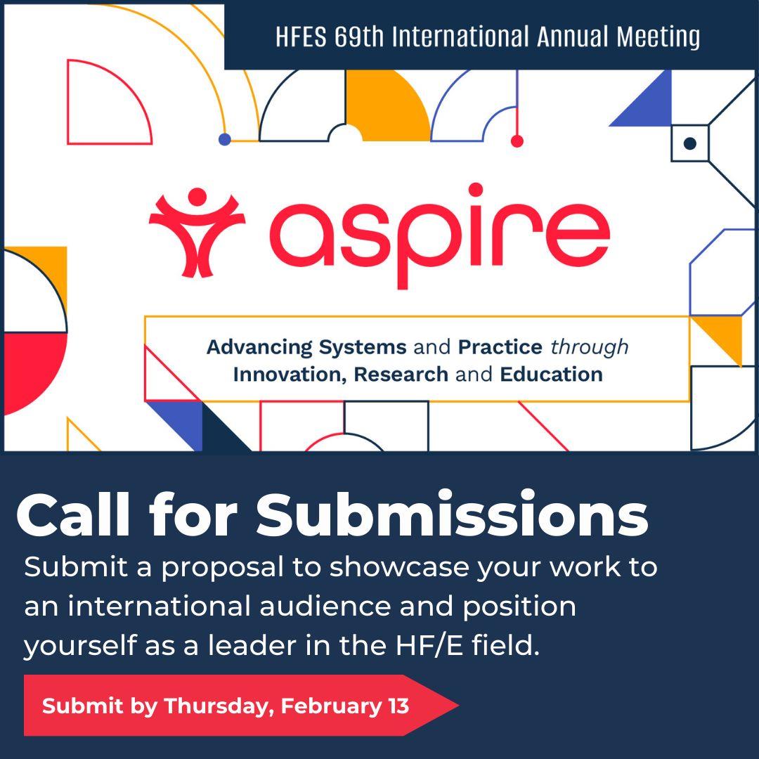 For more information visit: https://www.hfes.org/Events/ASPIRE-International-Annual-Meeting/Call-for-Submissions