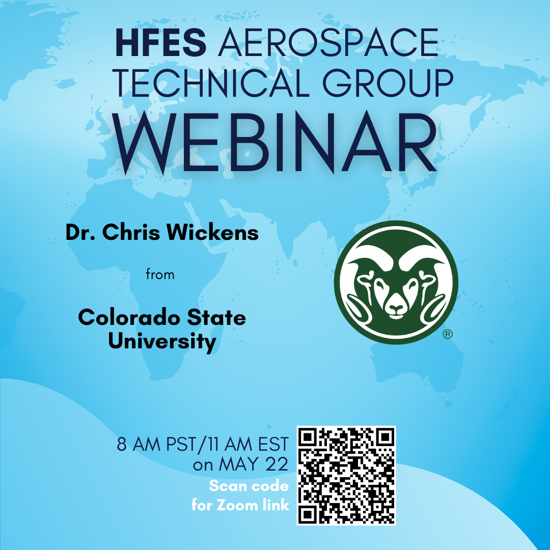 Our next webinar will take place over Zoom on Thursday, May 22nd, 2025, at 8AM Pacific Time / 11AM Eastern Time. Our guest will be Dr. Chris Wickens from Colorado State University.