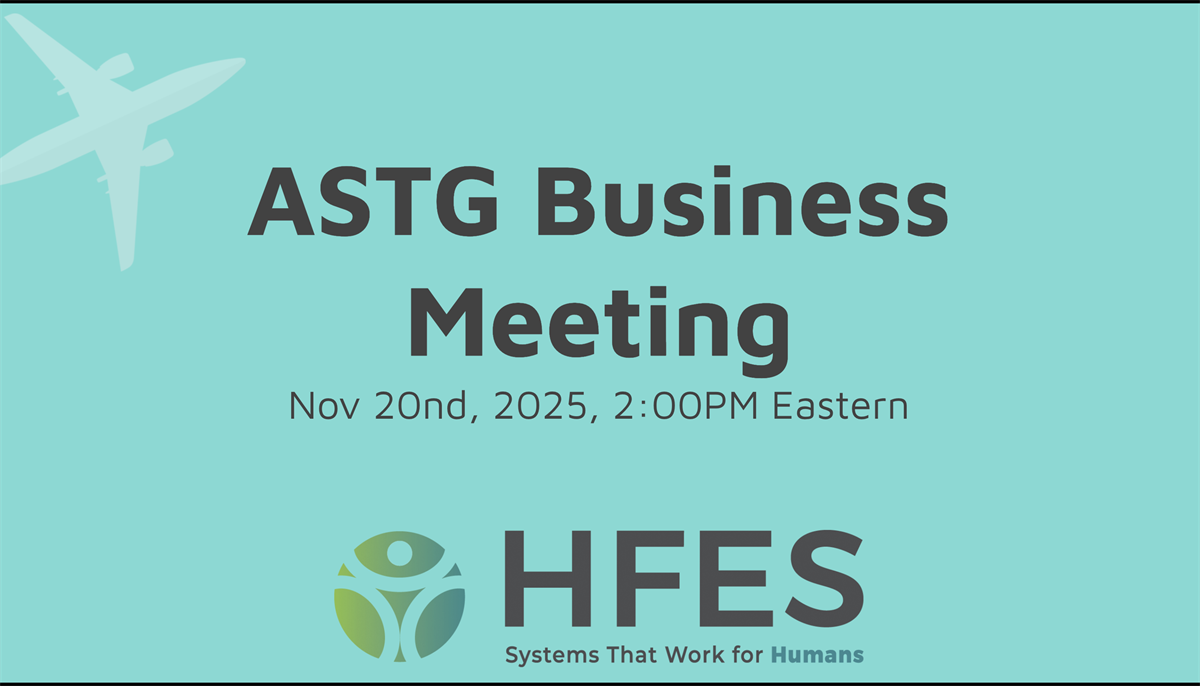 Please note that ASTG and HFES memberships are independent. You may be an ASTG member without being an HFES member, and vice versa.